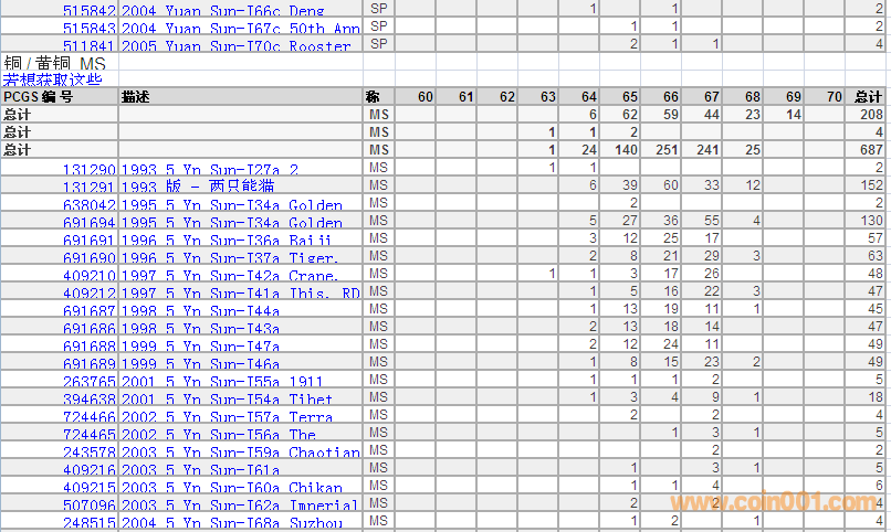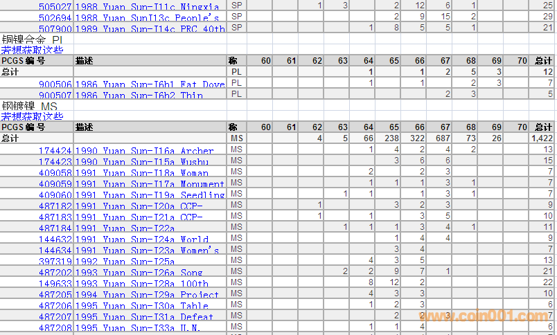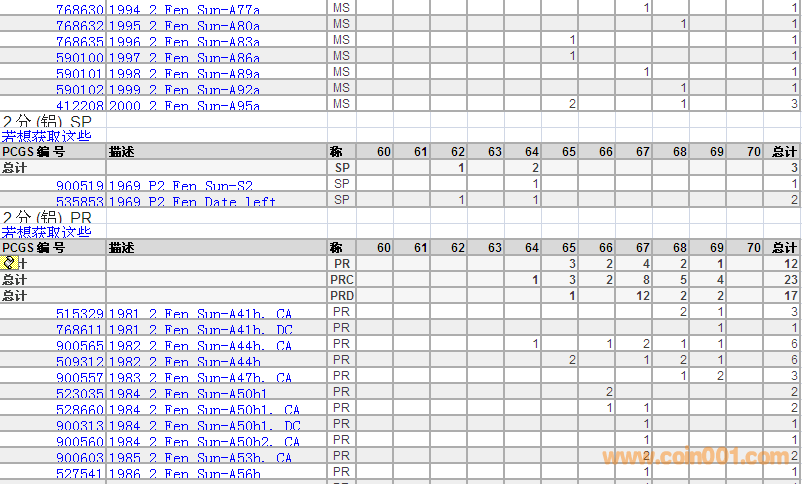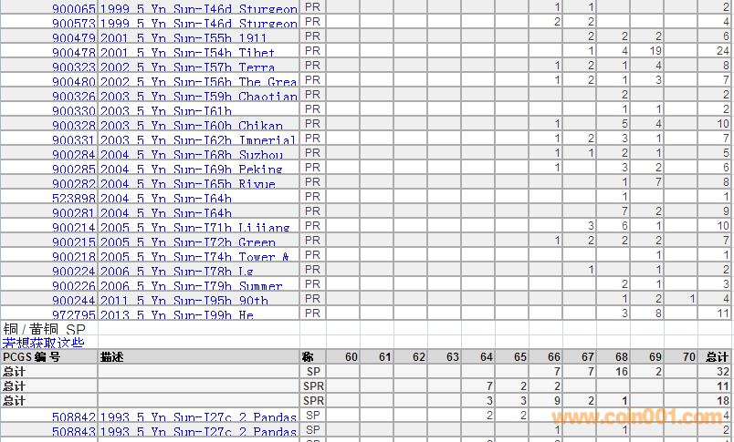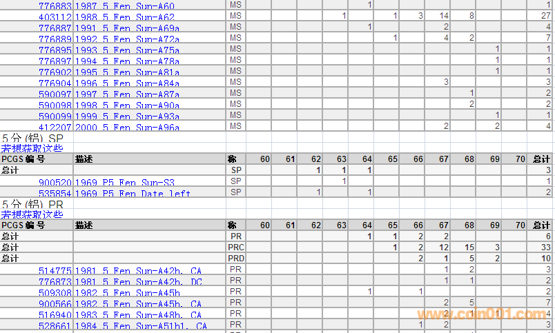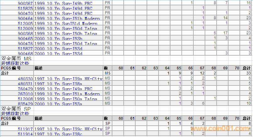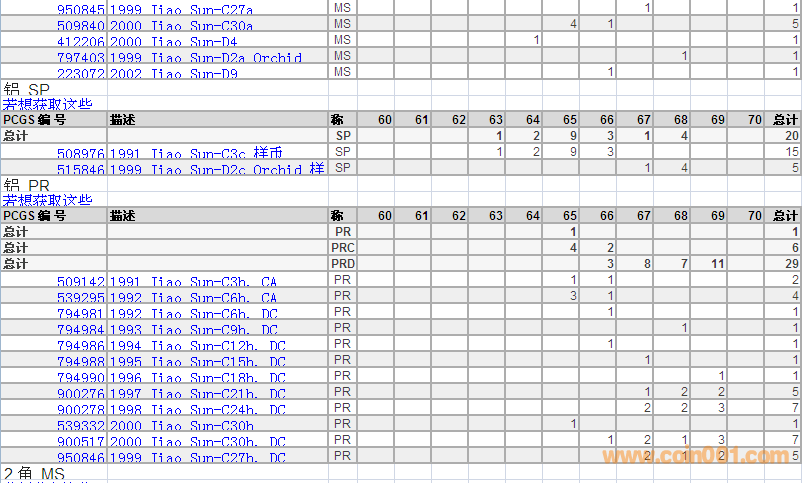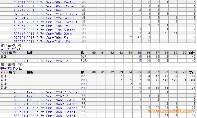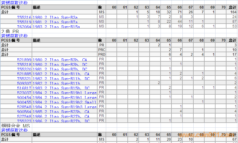 PCGS硬幣評級分?jǐn)?shù)分布 ..