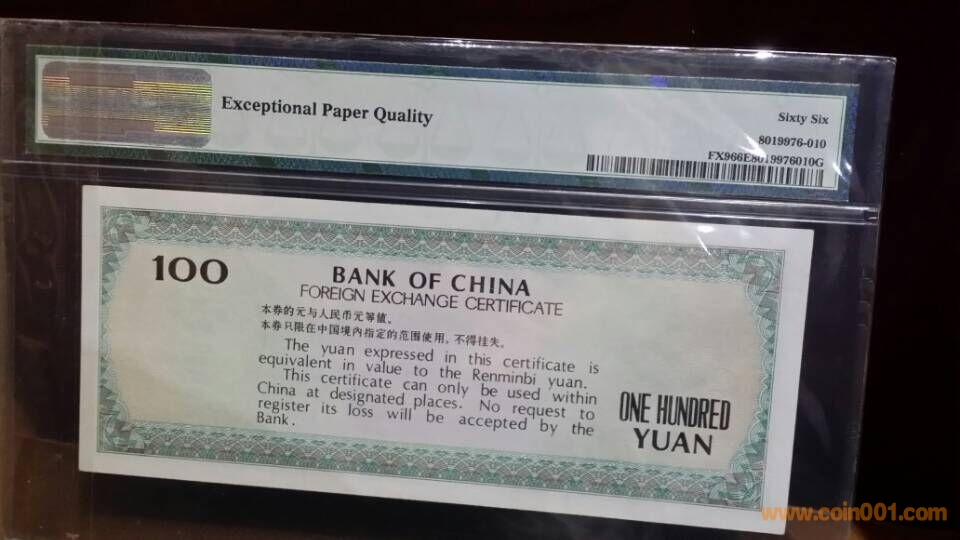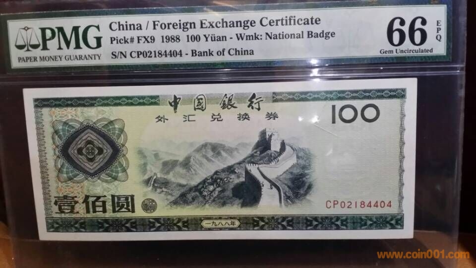 2)1988年,中國(guó)銀行外匯兌換券壹佰元,CP,02184404,PMG,66,EPQ       2500元