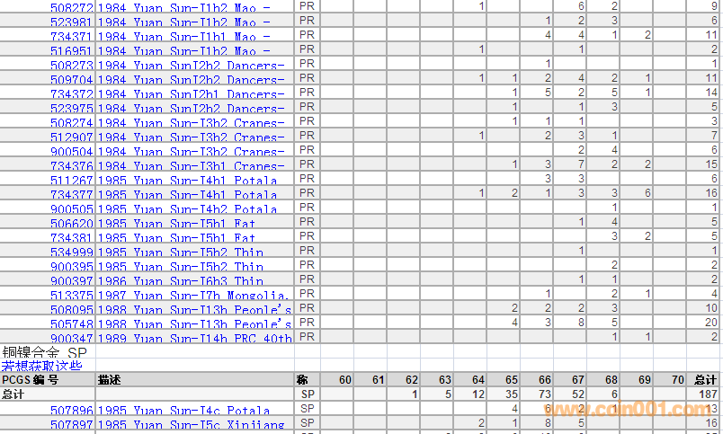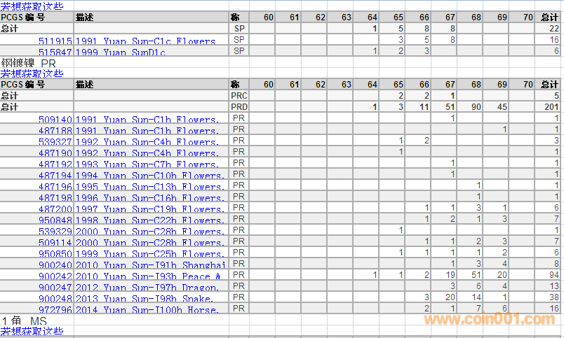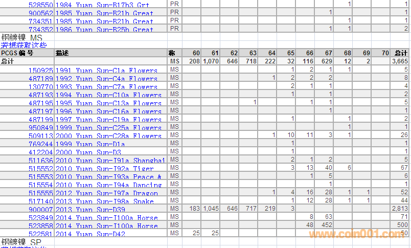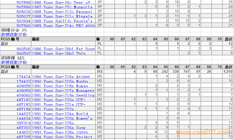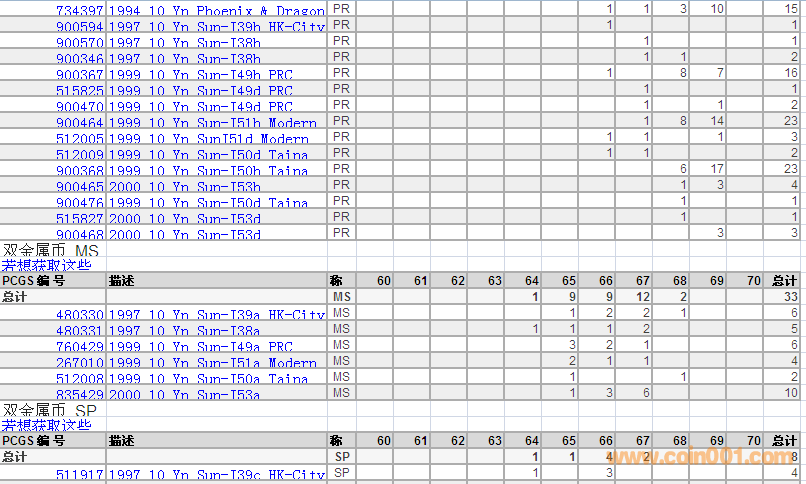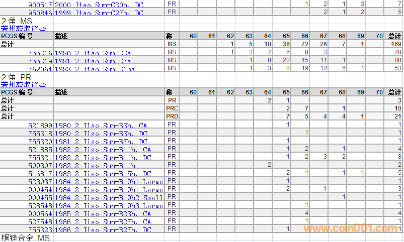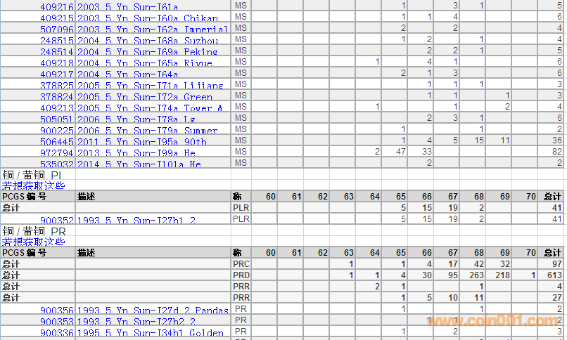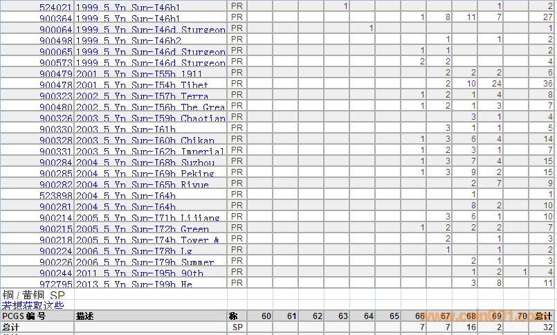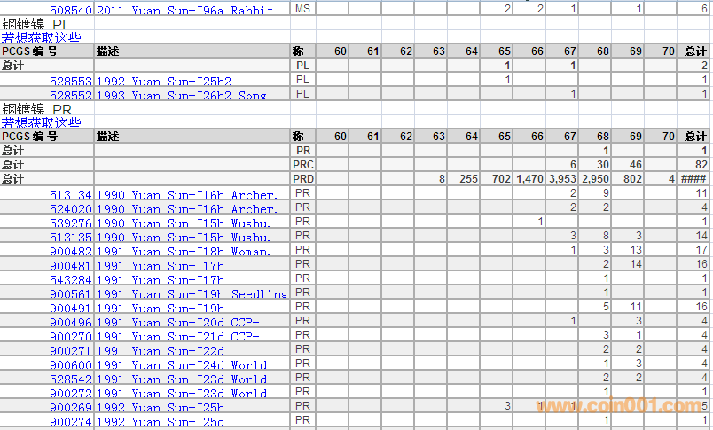 PCGS硬幣評級分數(shù)分布 ..