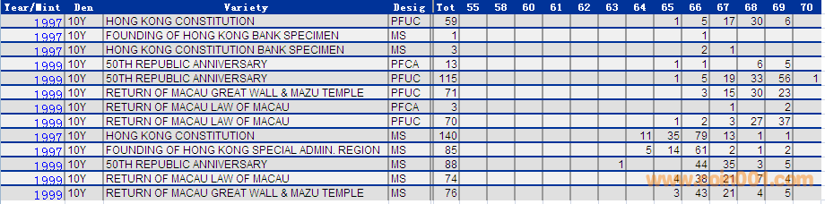 NGC硬幣評級分數(shù)分布 ..