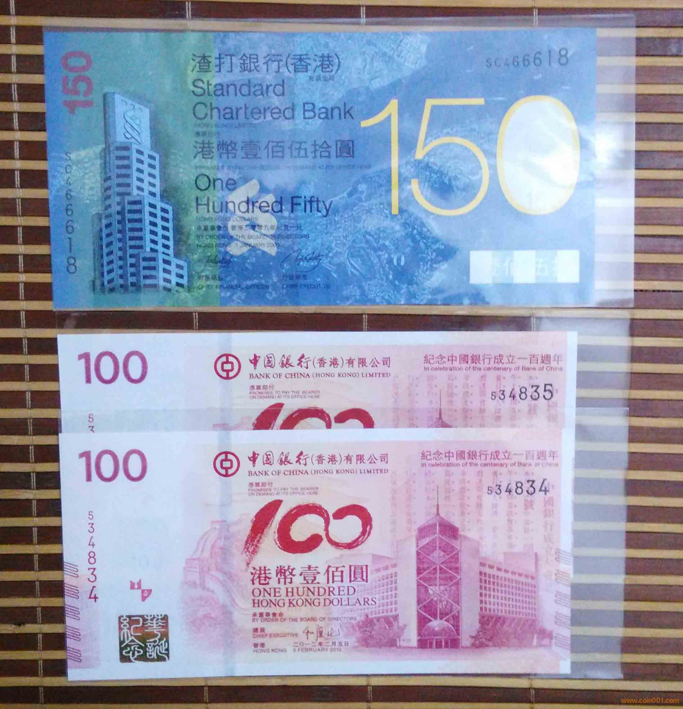 3)2012年中銀鈔壹佰元:534834-534835, 910元X2張