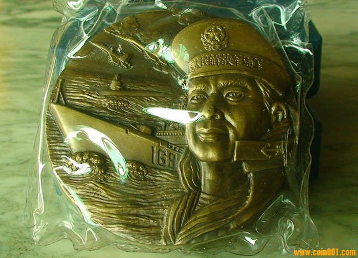 大銅章畫面上的高浮雕戰(zhàn)機,是我國自行設(shè)計制造的殲十戰(zhàn)機,也是現(xiàn)在我海軍航空部隊的主力戰(zhàn)機;畫面上的169號“武漢”驅(qū)逐艦,是2008年12月26日我國首批海軍赴亞丁灣、索馬里進行遠洋護航的主力戰(zhàn)艦;畫面上的核潛艇也是我國最先進的導(dǎo)彈核潛艇。這些都有很重要的紀念和象征意義。