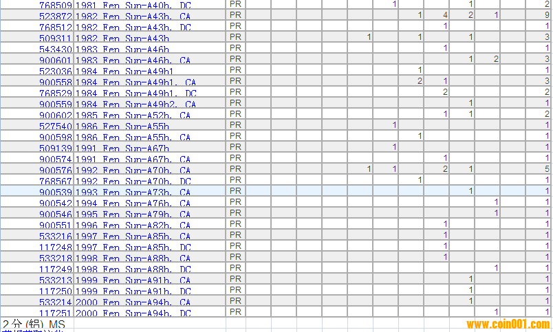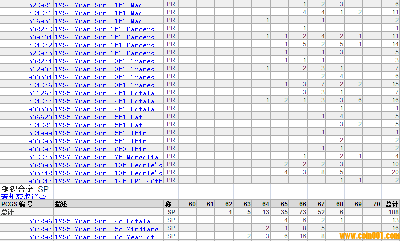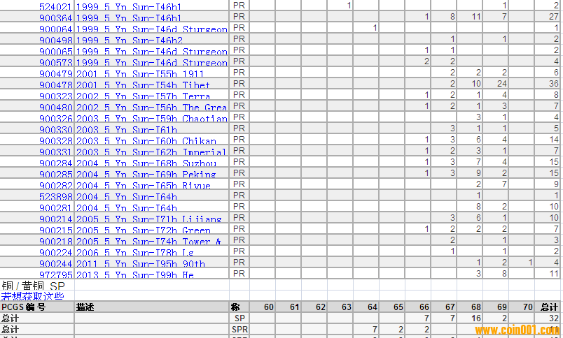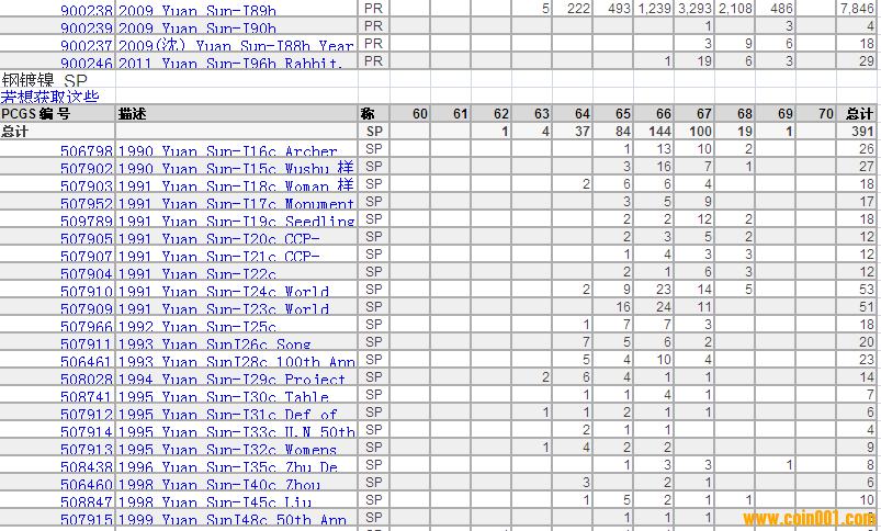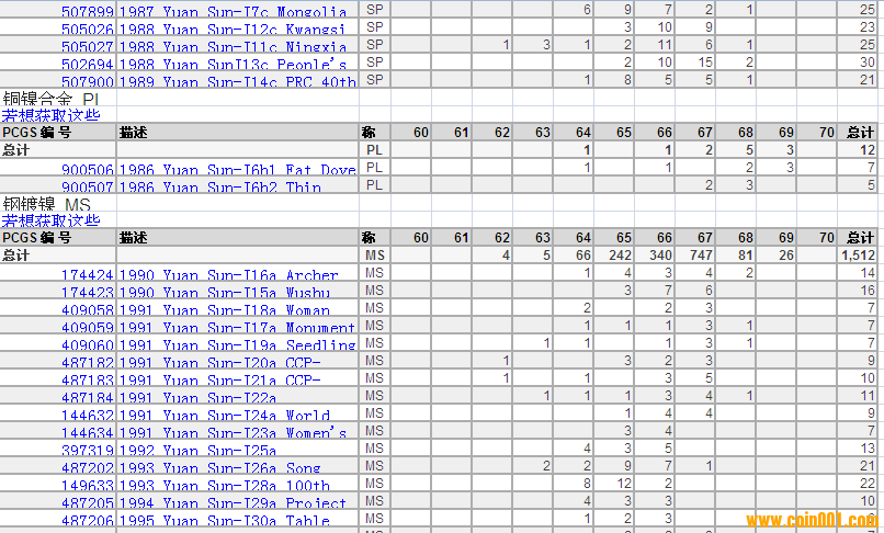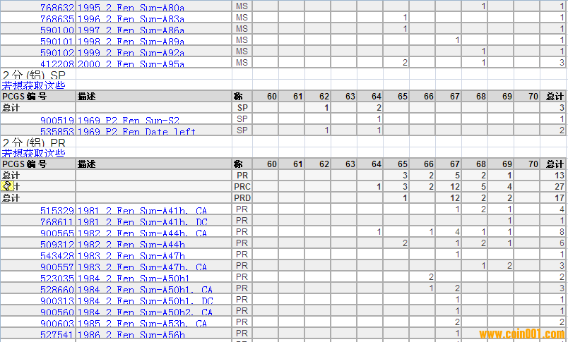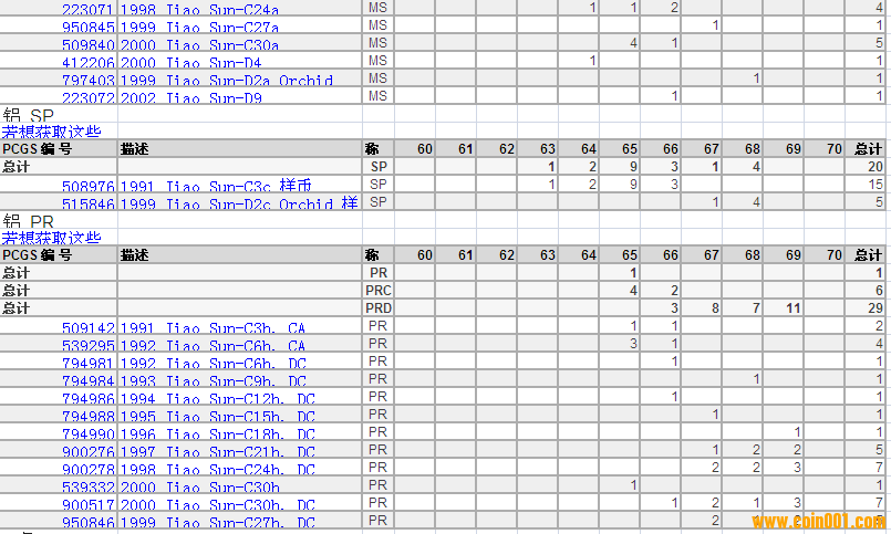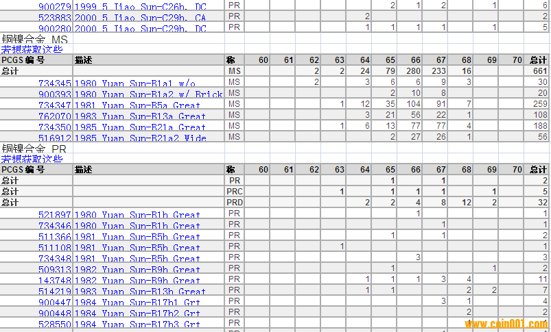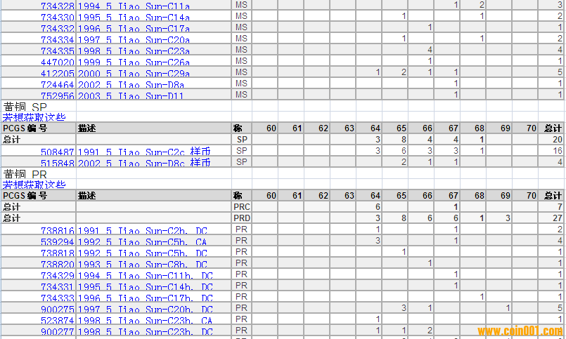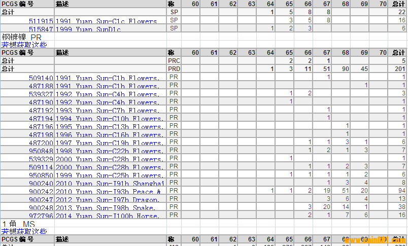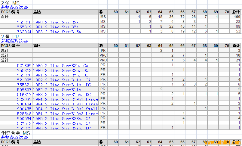 PCGS硬幣評(píng)級(jí)分?jǐn)?shù)分布 ..