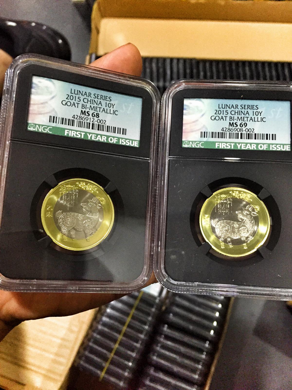 NGC-二輪羊首年綠標(biāo)黑羊(68+69)尾三位全同號(hào)-包郵套餐