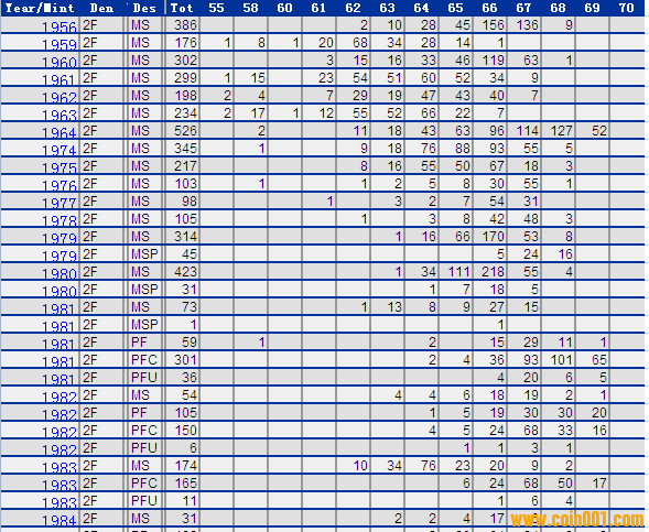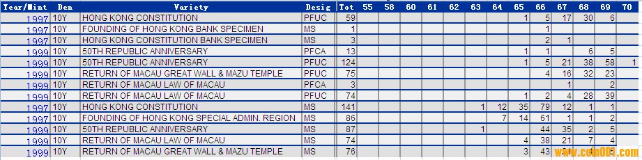 NGC硬幣評級分?jǐn)?shù)分布 ..