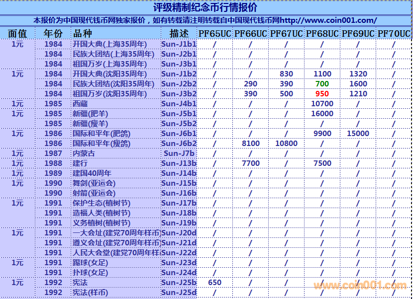 普通(精制)紀(jì)念幣交易