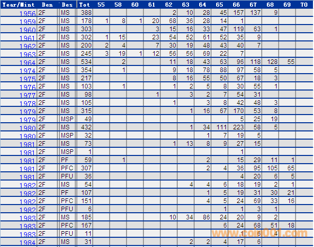 NGC硬幣評級分?jǐn)?shù)分布 ..