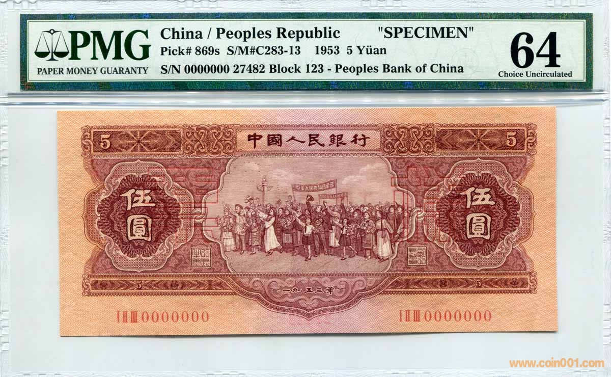售紅五元票樣2連號(hào)PMG ..