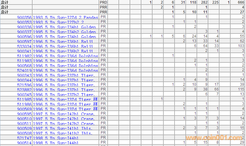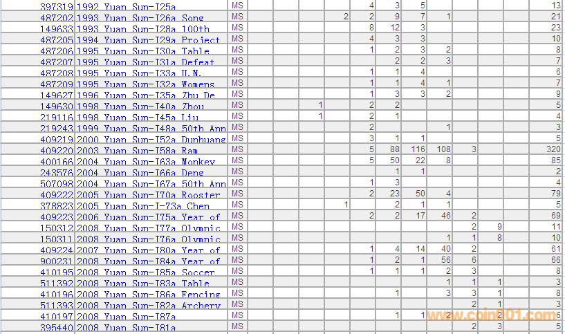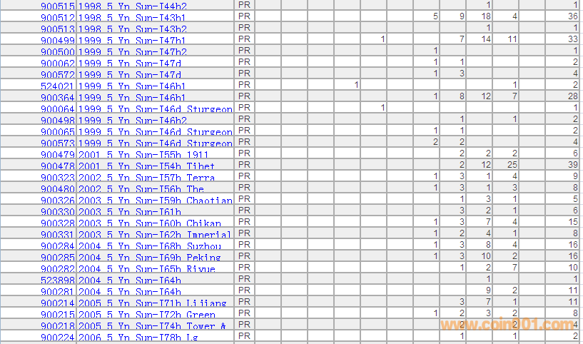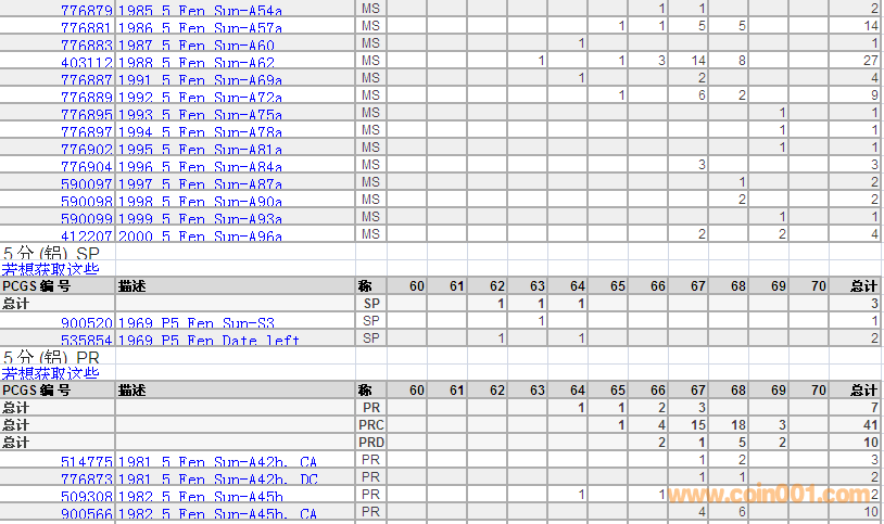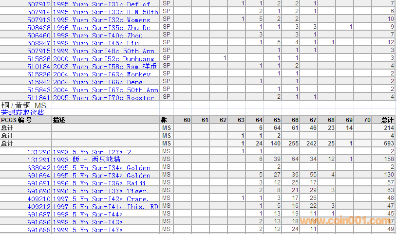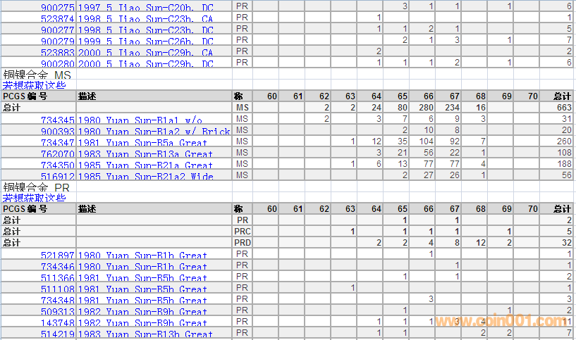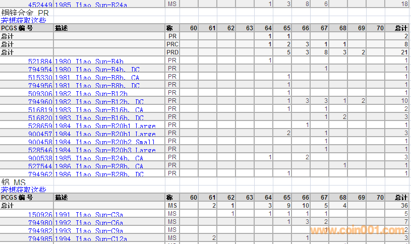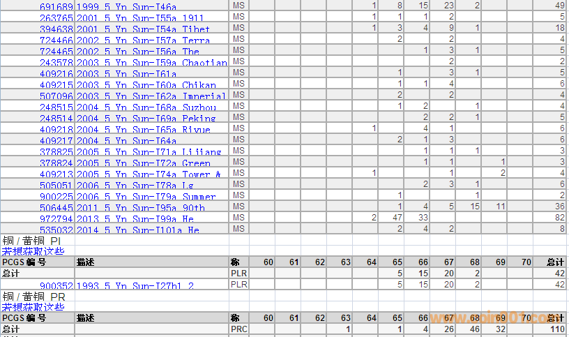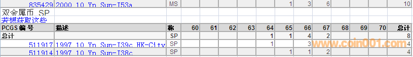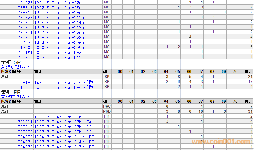 PCGS硬幣評級分數分布 ..