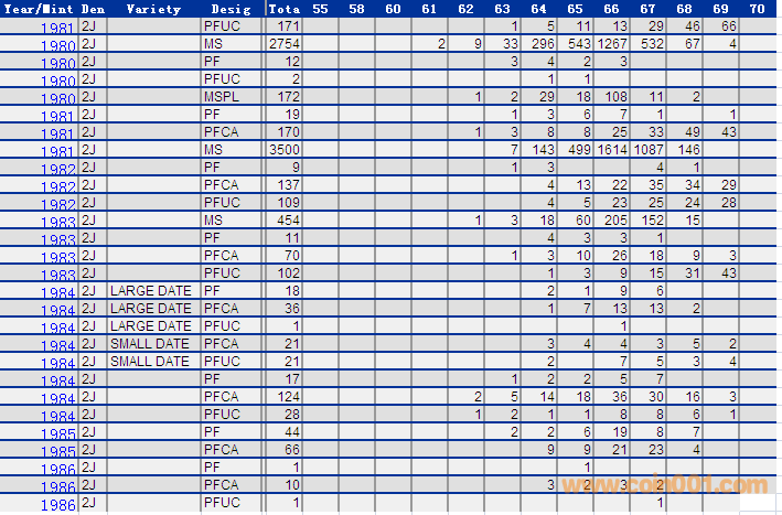 NGC硬幣評(píng)級(jí)分?jǐn)?shù)分布 ..