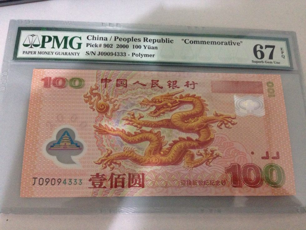 一張PMG67龍鈔豹子號