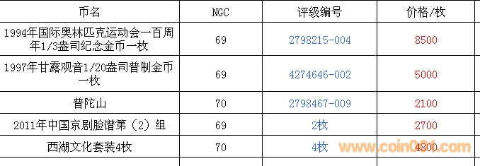 評級普通(精制)紀念幣交易