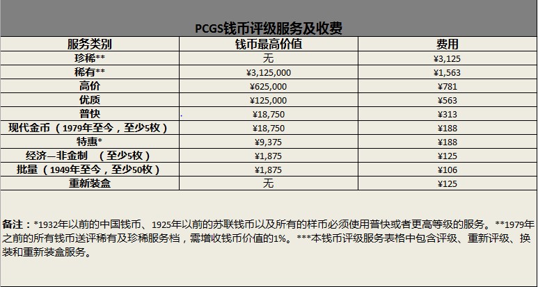 PCGS9月評級周,送評費 ..