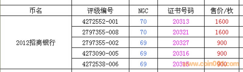 評級普通(精制)紀念幣交易