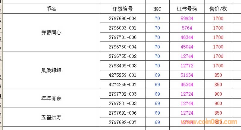 評級普通(精制)紀念幣交易