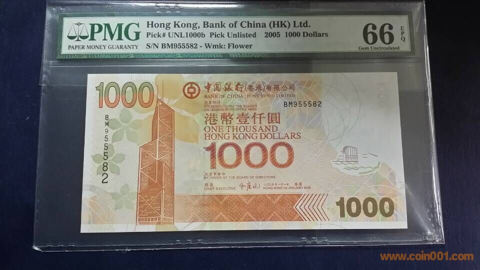 【PMG"66"EPQ】2005年中國銀行,壹千圓,BM,955582 售價:1800