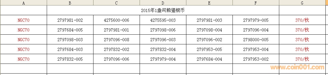 售;2015年熊貓銀幣、2 ..