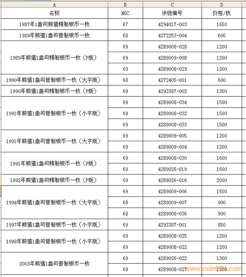 售;1987年熊貓、1989年 ..
