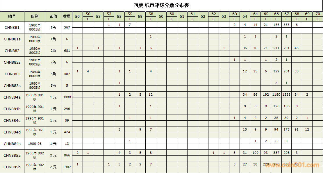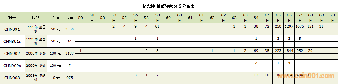 PMG紙幣評級分?jǐn)?shù)分布 ..