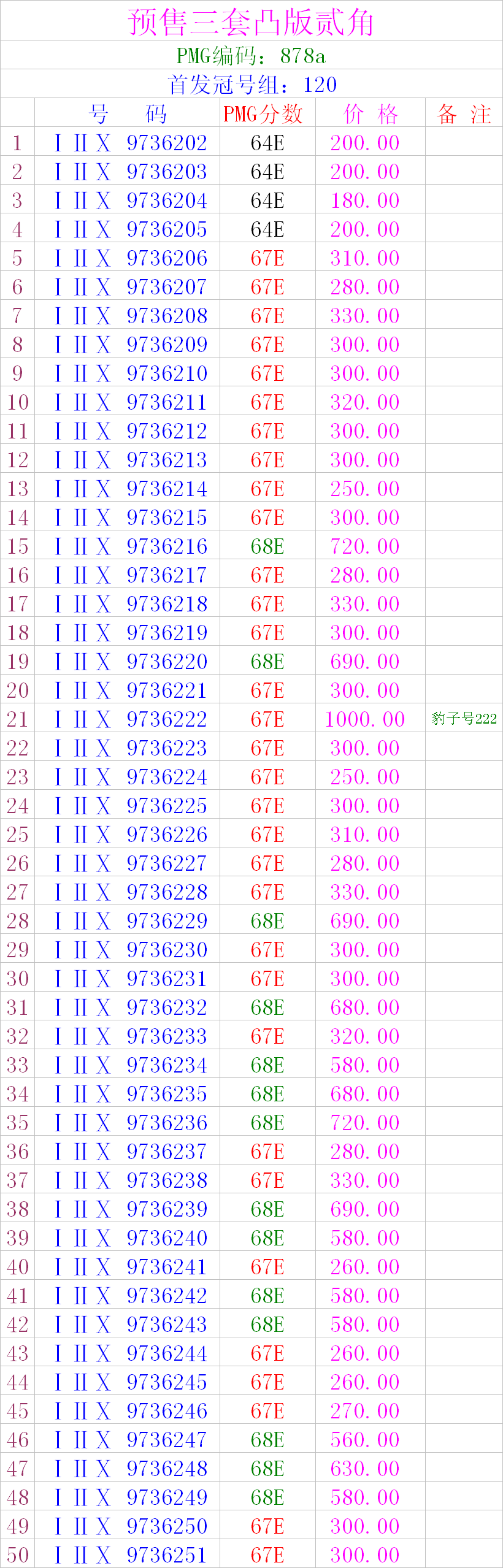 引用 引用第1樓廣州逸民于2015-10-04 17:03發(fā)表的 :電聯(lián)確認(rèn)尾233這張67分的,到貨后包快到我簽名檔地址,你跟帖確認(rèn)后我轉(zhuǎn)賬你