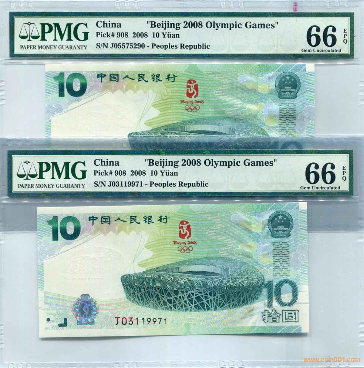 PMG 66分 EPQ 奧運(yùn)鈔 綠 ..