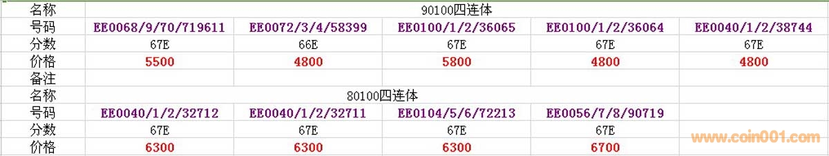 PMG 67 EPQ 【80100四連體 ..