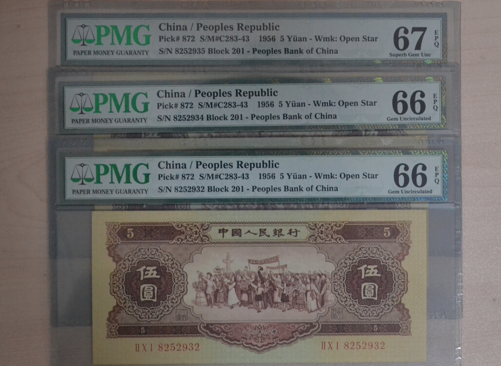 PMG67 66黃五元 號碼無47