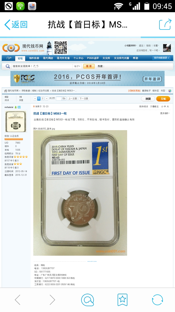 引用 引用第25樓小松鼠8880于2015-12-31 10:34發(fā)表的 :韓兄與我溝通,是個(gè)誤會,已確認(rèn)一枚,4號發(fā)貨!