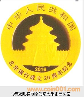 中國人民銀行定于2016年1月5日發(fā)行北京銀行成立20周年熊貓加字金銀紀(jì)念幣一套。該套紀(jì)念幣共2枚,其中金質(zhì)紀(jì)念幣1枚,銀質(zhì)紀(jì)念幣1枚,均為中華人民共和國法定貨幣。