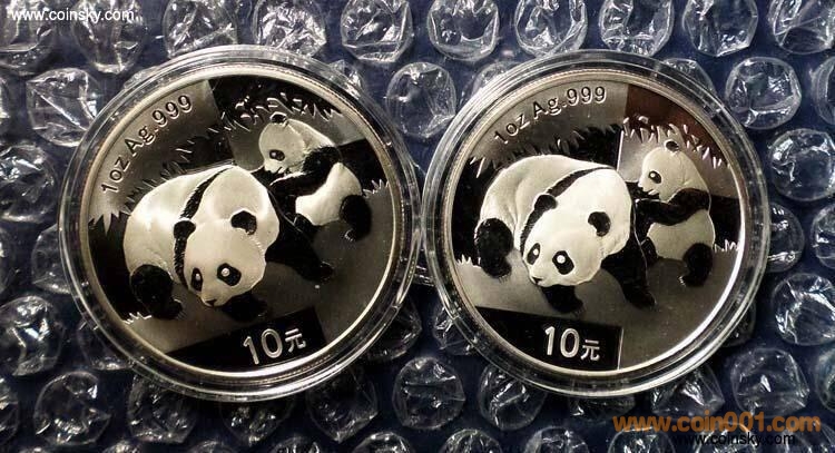 2008熊貓銀幣2枚 無(wú)斑 ..