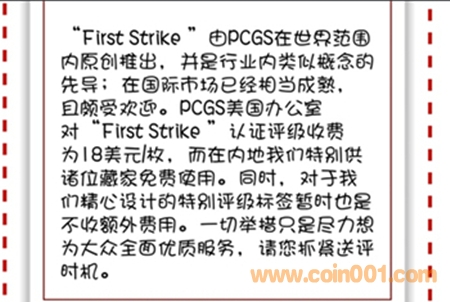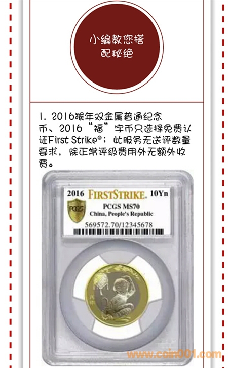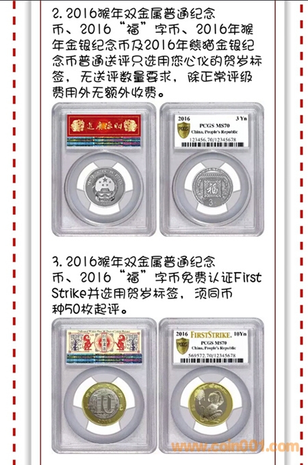 其中二猴與福字幣可選擇加“First Strike”認(rèn)證標(biāo)簽,無數(shù)量限制。但這兩種幣要同時加FirstStrike+賀歲標(biāo)簽需要送評滿50枚才可。(具體內(nèi)容看下圖)