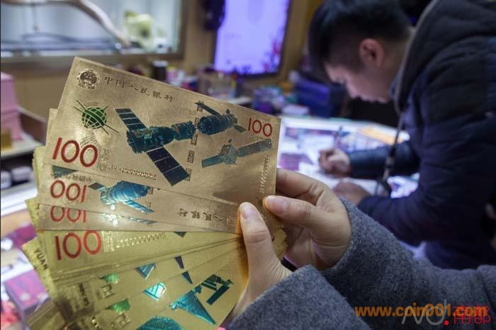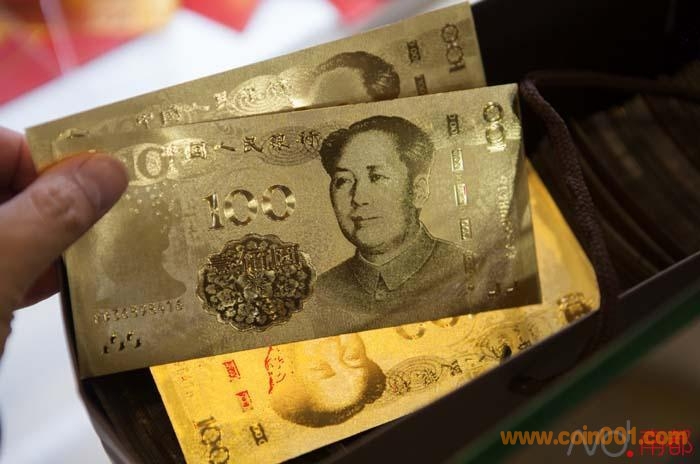 金光閃閃,其圖樣、大小與百元人民幣無異,還有證書驗明身份,“含金量999‰”。不過,你還真相信這是金箔做的?