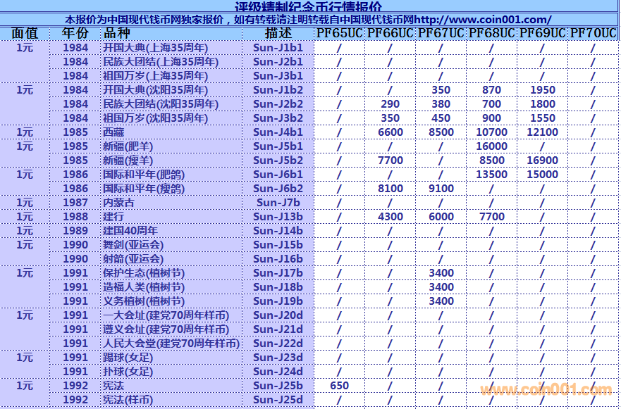 普通(精制)紀(jì)念幣交易