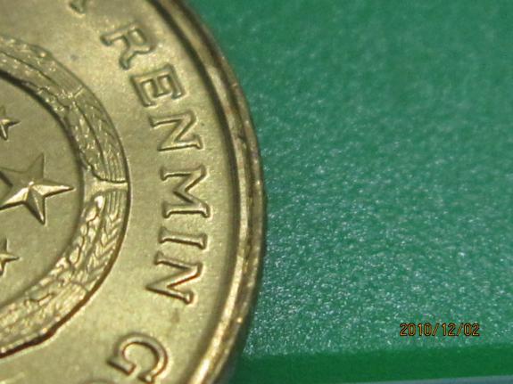 引用 引用第3樓凡品于2010-12-03 08:01發(fā)表的 : A.5角和1元的邊齒為最大疑問處,ZHONG HUA REN MING GONG HE GUO 的上邊有明顯的多出一道邊圈 B.1元硬幣的中文 “中華人民共和國”凹凸感不強(qiáng). 純屬個(gè)人看法,請(qǐng)大家指正