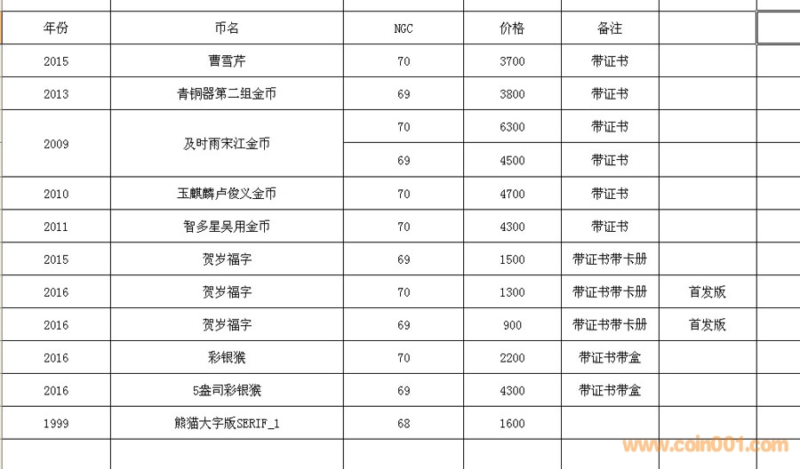 評級普通(精制)紀念幣交易