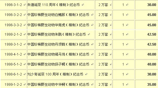 遺產(chǎn)、后期動物和臺灣精制幣,在廣州老林以前的報價里,同時發(fā)行的每一套幣都是獨立報價的,一目了然,清清楚楚;