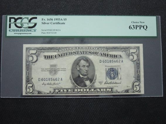 PCGS 藍(lán)庫(kù)印 1953年A版 5 ..