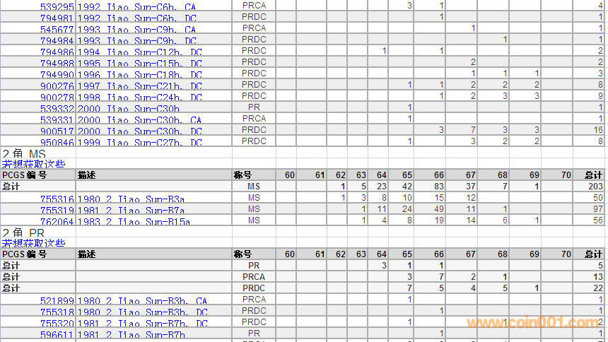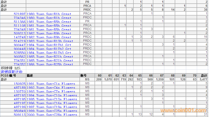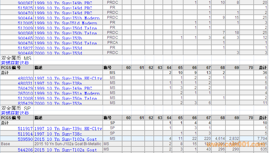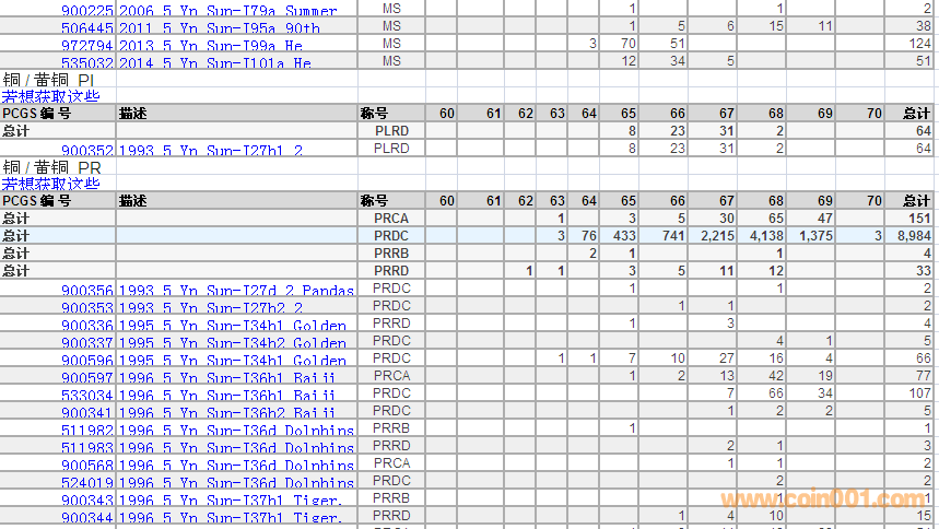 PCGS硬幣評級數(shù)量報告 ..