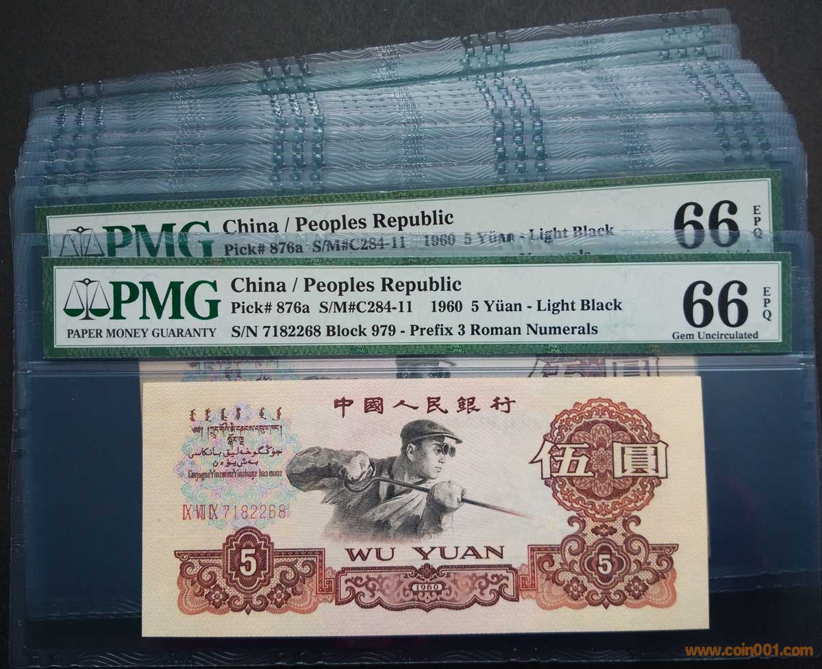 新到 三羅煉鋼伍圓 伍元 連號 PMG 66EPQ