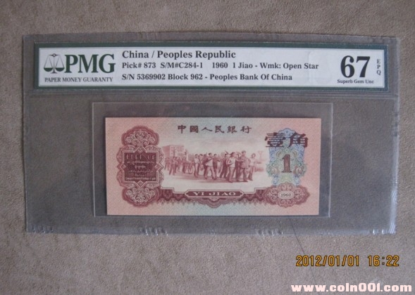 出售67EPQ棗紅一角一張