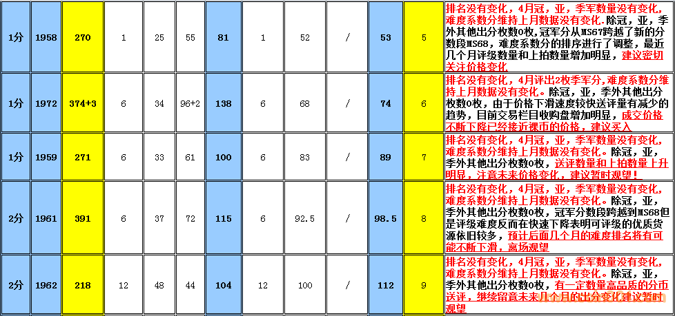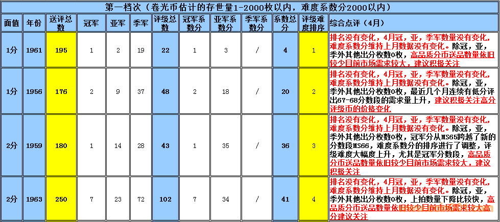 早期分幣評級難度排 ..