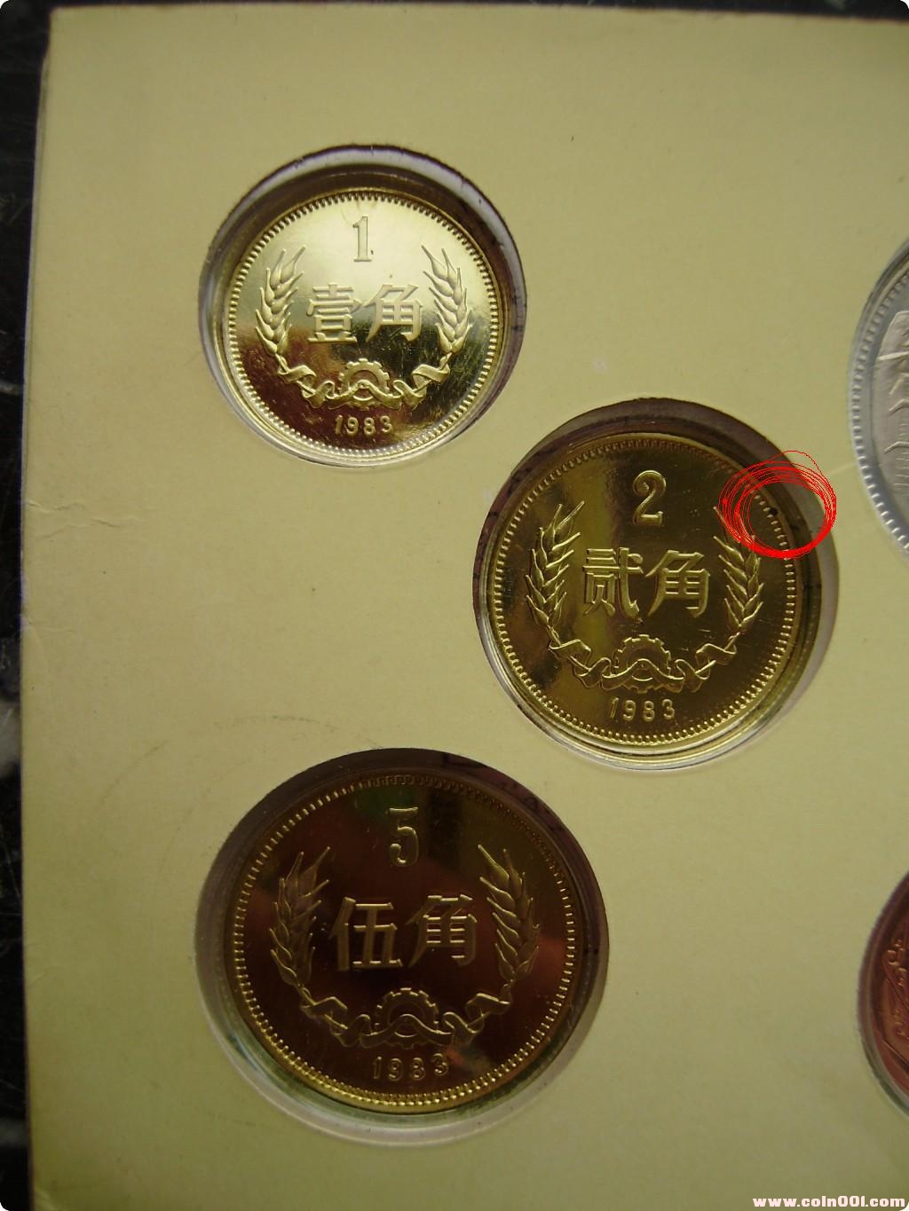 除了2角有一個很小的黑點以外,其他幣全品(已經(jīng)在圖中用紅圈注明)
