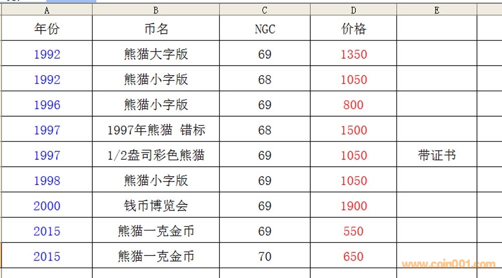 【回血降價售NGC】92年熊貓、96年熊貓、97年熊貓、98年熊貓、2000年錢幣博覽會、2016年熊貓金幣