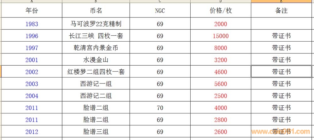 評級普通(精制)紀念幣交易
