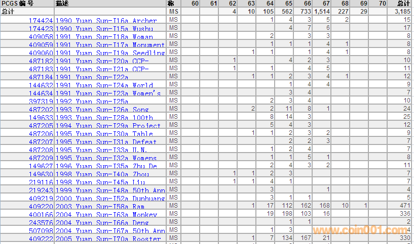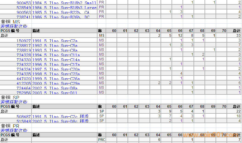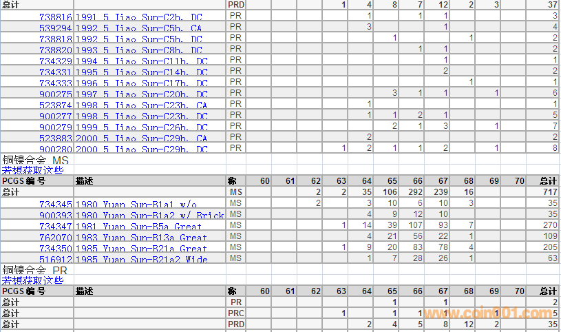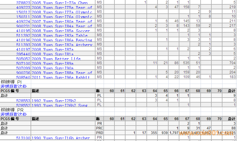 PCGS硬幣評(píng)級(jí)數(shù)量報(bào)告 ..