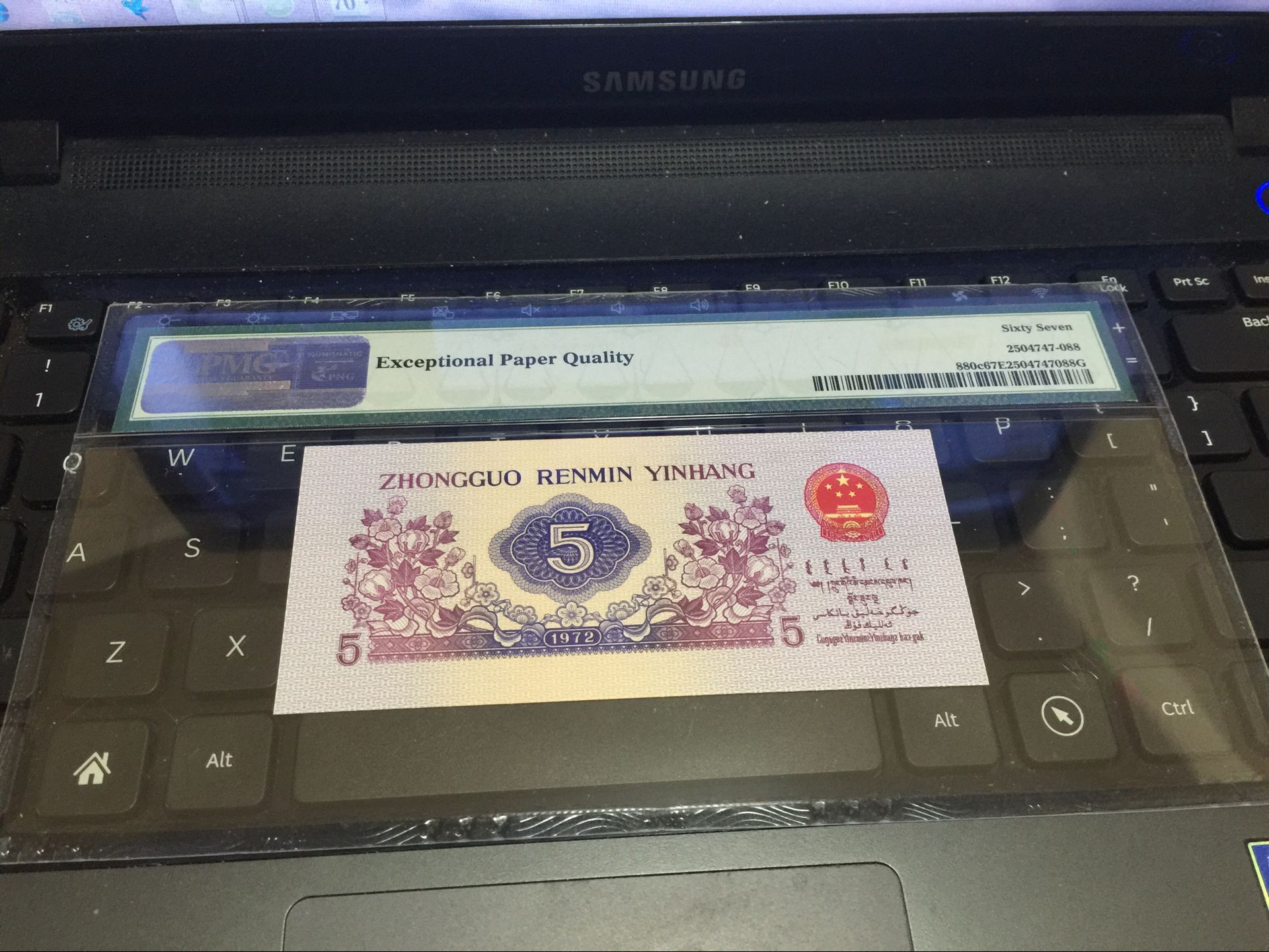 壓軸戲 聯(lián)體紀(jì)念鈔 PMG 67分 雙龍鈔 連證書(shū)也是已經(jīng)評(píng)級(jí)進(jìn)了盒子的!證鈔尾4同號(hào) 雙龍冠軍分絕對(duì)稀罕!連體鈔都是美國(guó)才可以評(píng)級(jí)的!雙龍 67分就是冠軍分!中國(guó)人民銀行 已經(jīng)明確說(shuō)了 以后 永遠(yuǎn)也不在發(fā)行聯(lián)體鈔 奧運(yùn)綠鈔就沒(méi)有聯(lián)體 去年航天鈔 3億張的天量 都不發(fā)行一張聯(lián)體鈔 可以證明 聯(lián)體鈔后市 本人是非常看好的!連號(hào)送評(píng)的 冊(cè)子全齊!