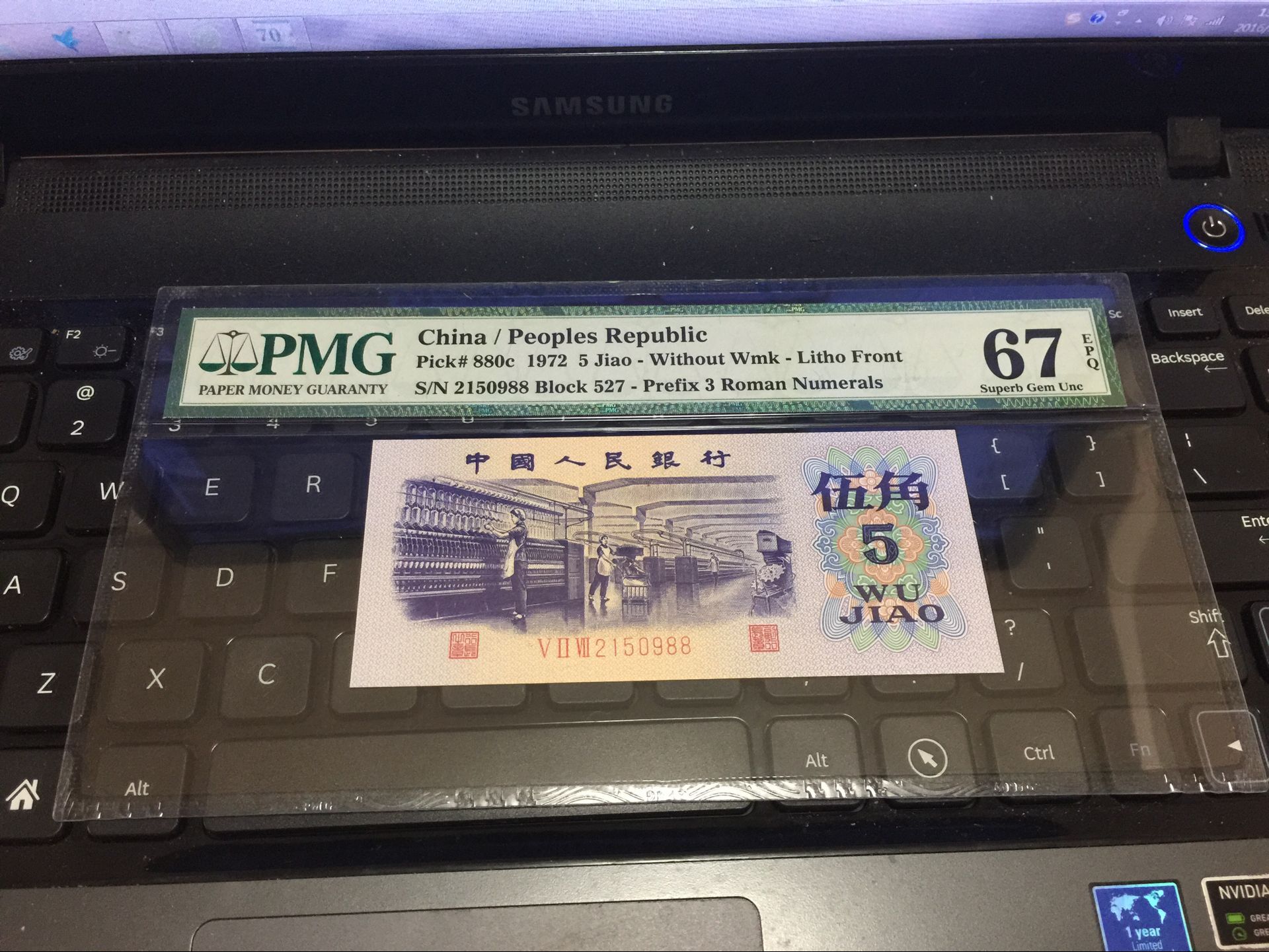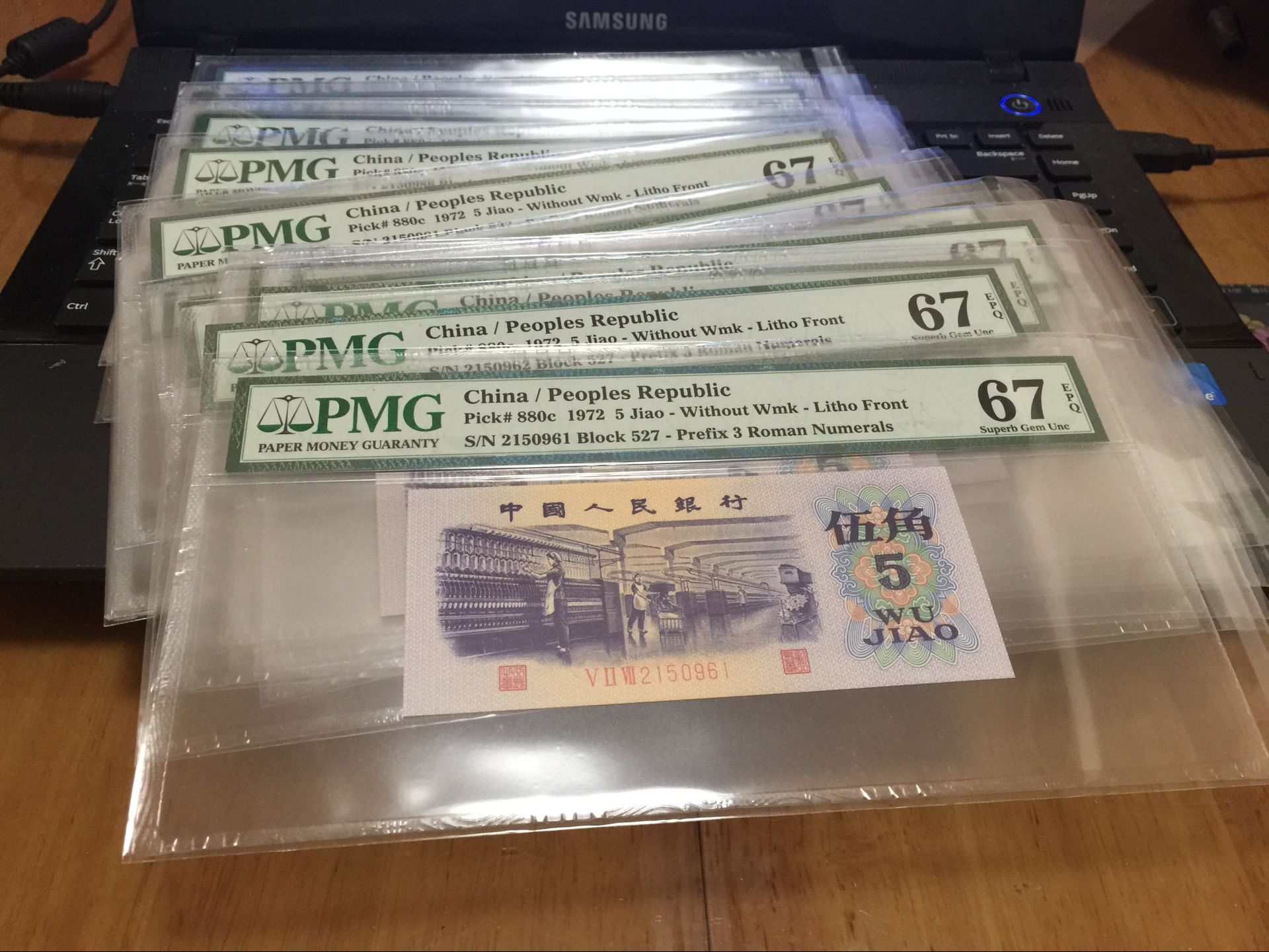 4拍 0元起拍 第三版人民幣 PMG 67分 伍角紡織 平版無(wú)水印 捆拆絕中絕的刀貨送評(píng)的 全程無(wú)7尾971-980 標(biāo)十都是67 一流珍品 同分稀少 剛美國(guó)嚴(yán)評(píng)回來(lái)的第三代PMG高清盒!現(xiàn)在美國(guó)是非常嚴(yán)評(píng)的時(shí)代