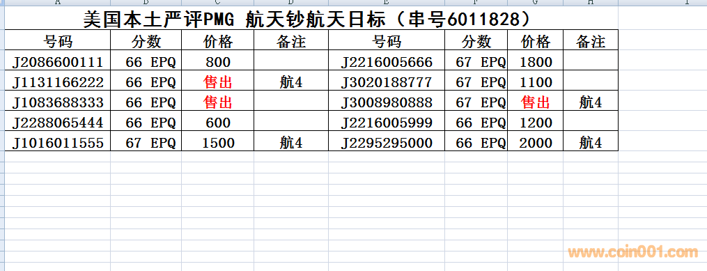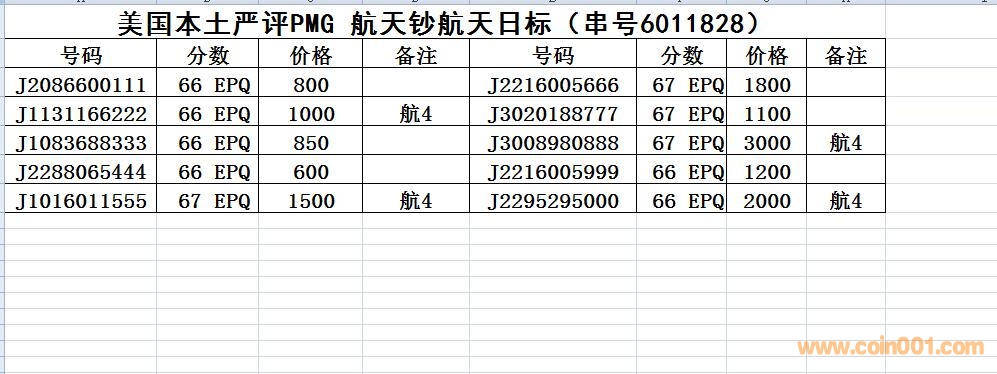 新到貨美國本土嚴評航天鈔~航天日標簽無47豹子號一組,使用了PMG新型封套,新封套的清晰程度顯著提升,由此帶來的卓越視覺體驗令封存其中的紙幣的呈現(xiàn)力得到巨大提升。單要價格和號碼如圖,整組要的話,優(yōu)惠價1.33萬元,也可微信:13576999680聯(lián)系看詳圖和其他67 E號碼,以上價格都包郵。