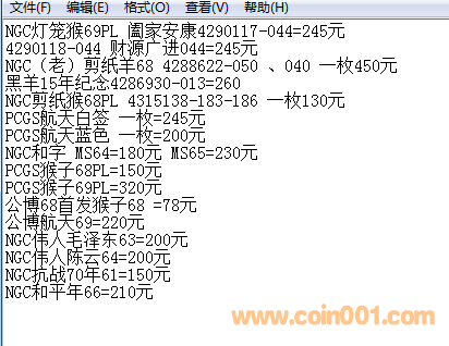 評級普通(精制)紀念幣交易