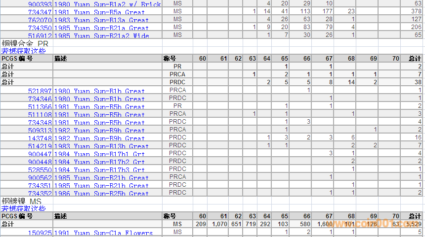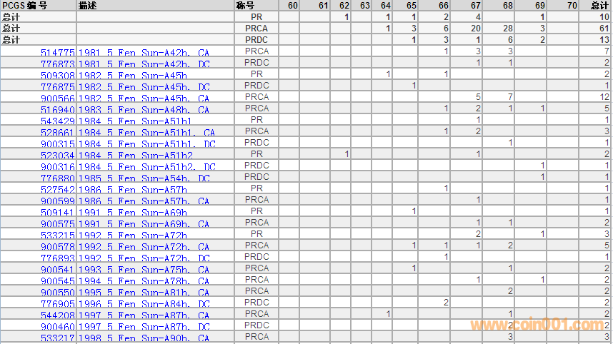 PCGS硬幣評(píng)級(jí)數(shù)量報(bào)告 ..